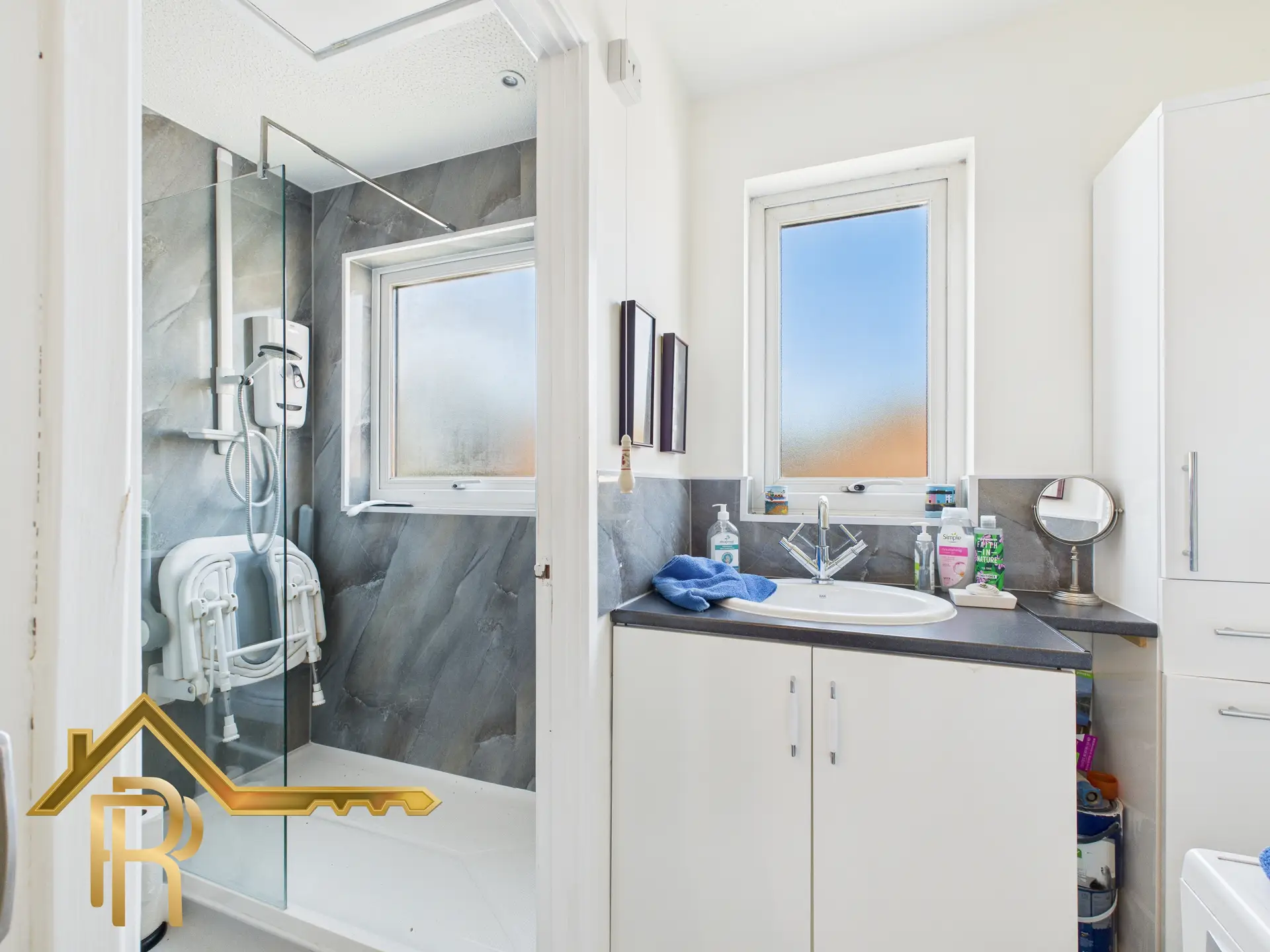 Located in a quiet no-through road in Harold Hill, sits this compact first floor studio flatl. This flat boasts a new bathroom, just 18 months old, with a double shower, w/c, sink with white high gloss vanity and matching high gloss storage units. The main living space benefits from newly installed space-saving made to measure fitted wardrobes and fitted cabinets. The kitchen features white wooden wall and base units with a wooden worktop and integrated electric cooker, hob and fridgefreezer.